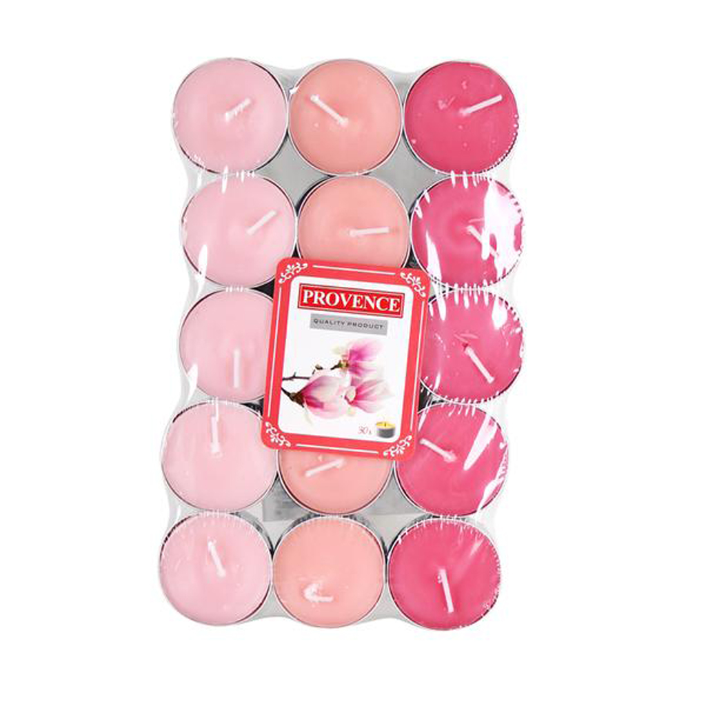 Vonná čajová svíčka PROVENCE magnolie 30ks je příjemný a přirozený zdroj světla. Zároveň zajistí krásnou vůni v místnosti a podpoří příjemnou atmosféru. Čajové svíčky jsou ideální na přípravu ozdobných věnců, náplně do svícnů a lamp.