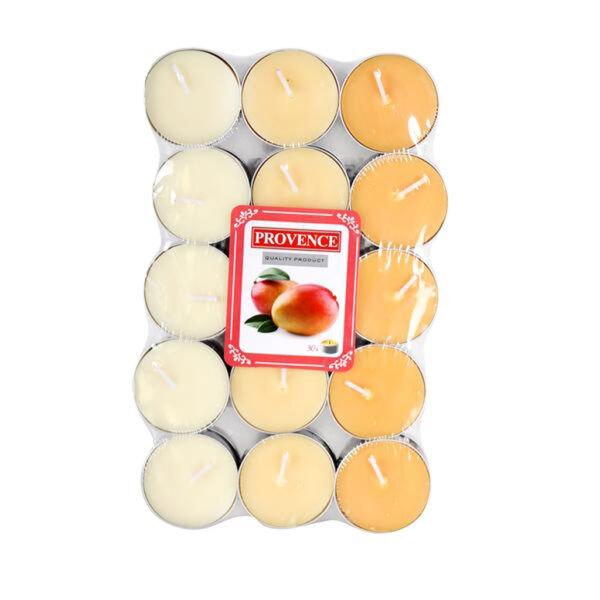 Vonná čajová svíčka PROVENCE mango 30ks je příjemný a přirozený zdroj světla. Zároveň zajistí krásnou vůni v místnosti a podpoří příjemnou atmosféru. Čajové svíčky jsou ideální na přípravu ozdobných věnců, náplně do svícnů a lamp.