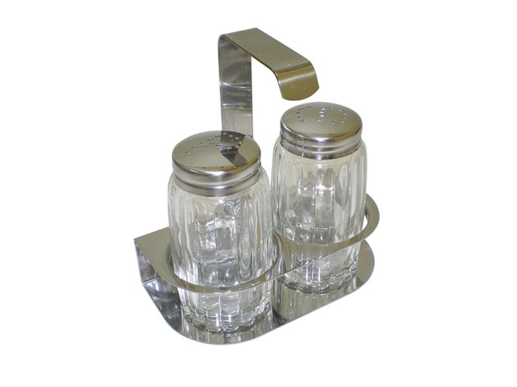 Stojánek na sůl a pepř je vhodná k dochucování pokrmů a patří mezi nepostradatelný doplněk každého stolování. Dochucovací souprava je vyrobena z nerezu a skla. Objem 50 ml. Rozměry – 7, 2 x 4 cm.