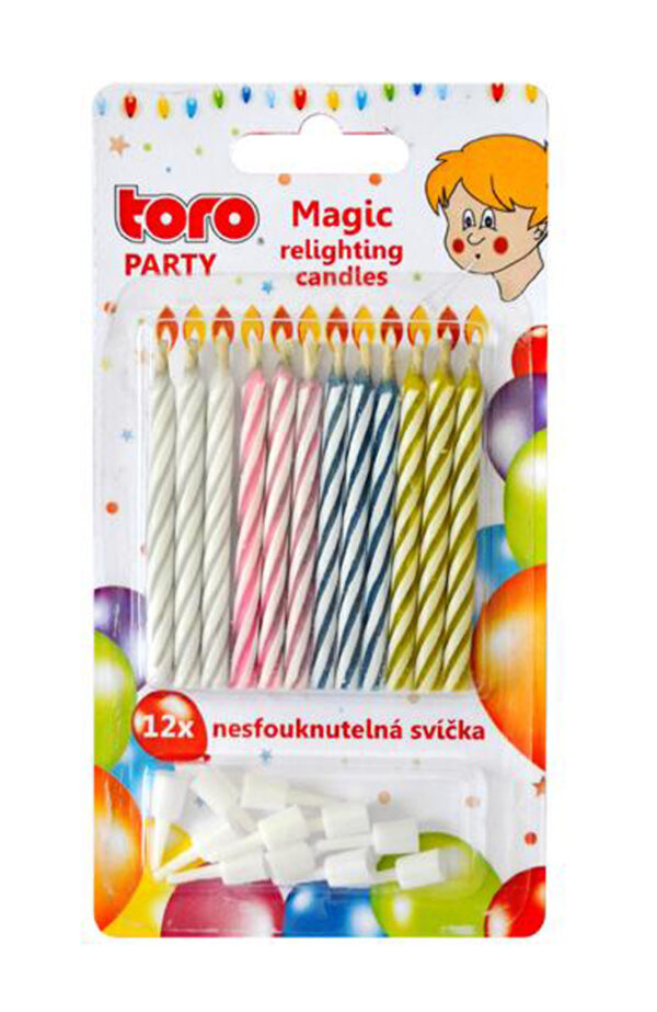 Svíčky na dort, které nelze sfouknout, jsou vhodné na párty či oslavu narozenin. Balení obsahuje 12 ks svíček a 12 ks držáčků na svičky. Svíčky jednoduše zapíchnete do dortu.