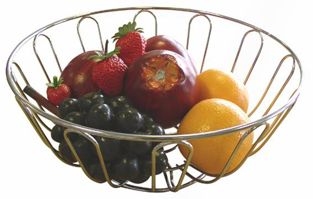 • Výhodou drátěných mís je to, že jsou otevřené a vzdušné a ovoce v nich rozložené se brzy nekazí. nerezové misky s plným dnem se dají použít zase na malé ovoce jako třešně, višně, rybíz nebo angrešt a mimo sezonu poslouží na cukrovinky nebo jiné dobroty.