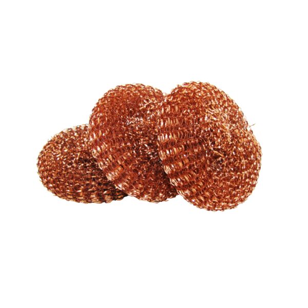 Výborná kovová drátěnka s měděným povrchem, vhodná na mytí dřezů, nádobí a spotřebičů. Balení obsahuje 3 ks. Materiál – měď. Rozměry: Ø 8 x 3 cm, 40g / 3 ks