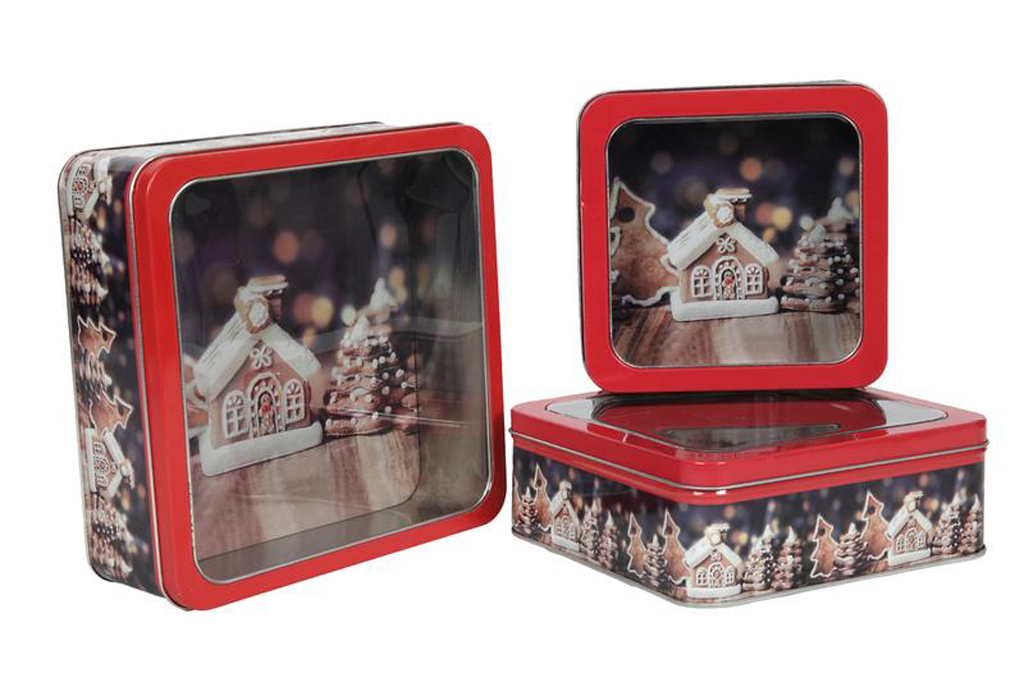HIT Dóza na vánoční cukroví 3ks perníková vesnička