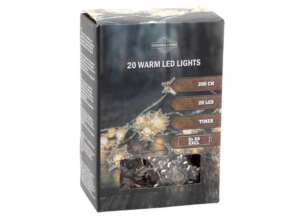 Světelný řetěz s časovačem 20LED vločky je krásná světelná dekorace nejen na Vánoce. Můžete ji umístit do okna či poličku, ale i na slavnostně prostřený stůl.