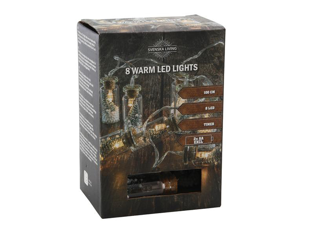Světelný řetěz s časovačem 8LED lahvičky je krásná světelná dekorace nejen na Vánoce. Můžete ji umístit do okna či poličku, ale i na slavnostně prostřený stůl.