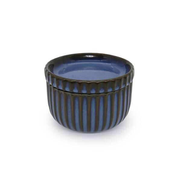Kameninová miska s víčkem TORO 290 ml v modré barvě. Obohacujícím prvkem této misky jsou jemné vroubky, které jeden vedle druhého zdobí misku kolem dokola. Menší kameninová miska s praktickým víčkem je ideální pro servírování oříšků či olivv nebo sháníte vhodnou nádobku na podávání dipů? Tato miska s víkem je v každém případě tou nejlepší volbou!