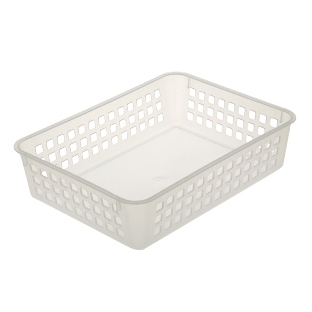 plastový košíček má velmi pěkný design, je lehký a je možné jej využít pro úschovu věcí v domácnostech, přenášení nebo odložení věcí. Košíček je velmi lehce omyvatelný od nečistot. Rozměry košíčku – 24,5 x 18,5 x 6 cm. Barva světle transparentní.