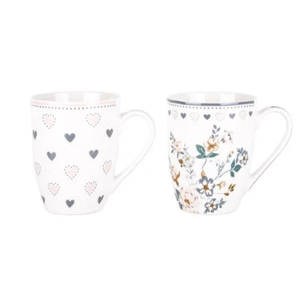 Keramický hrnek TORO o objemu 330 ml, dva retro motivy – květiny, srdce.