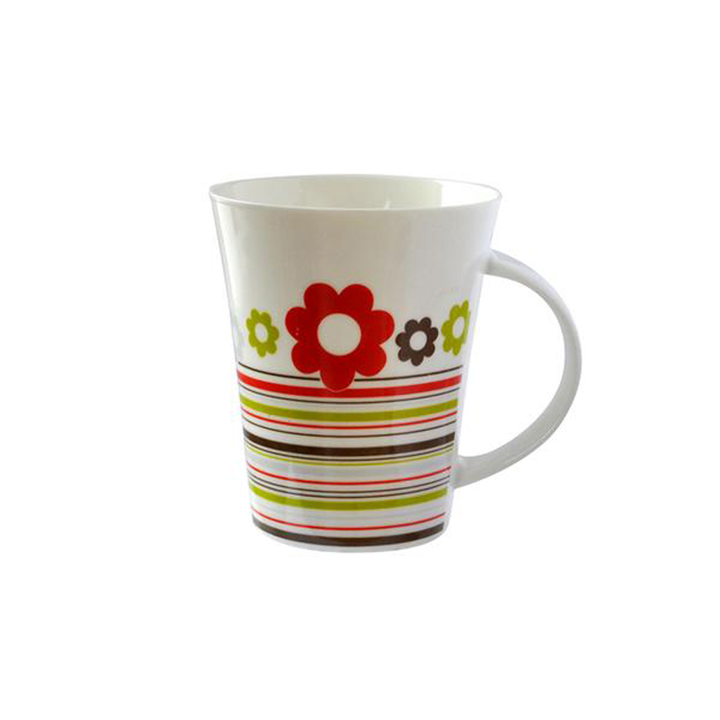 Krásný moderní hrnek o objemu 375 ml s vkusným designem květin a proužků v různém provedení. Materiál – keramika. Vhodné do myčky na nádobí. Rozměry – 9 x 11 cm.