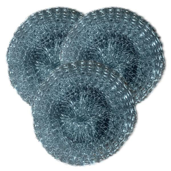 Výborná kovová drátěnka, vhodná na mytí dřezů, nádobí a spotřebičů. Balení obsahuje 3 ks. Rozměry: Ø 8 x 2,5 cm, 34g / 3 ks.