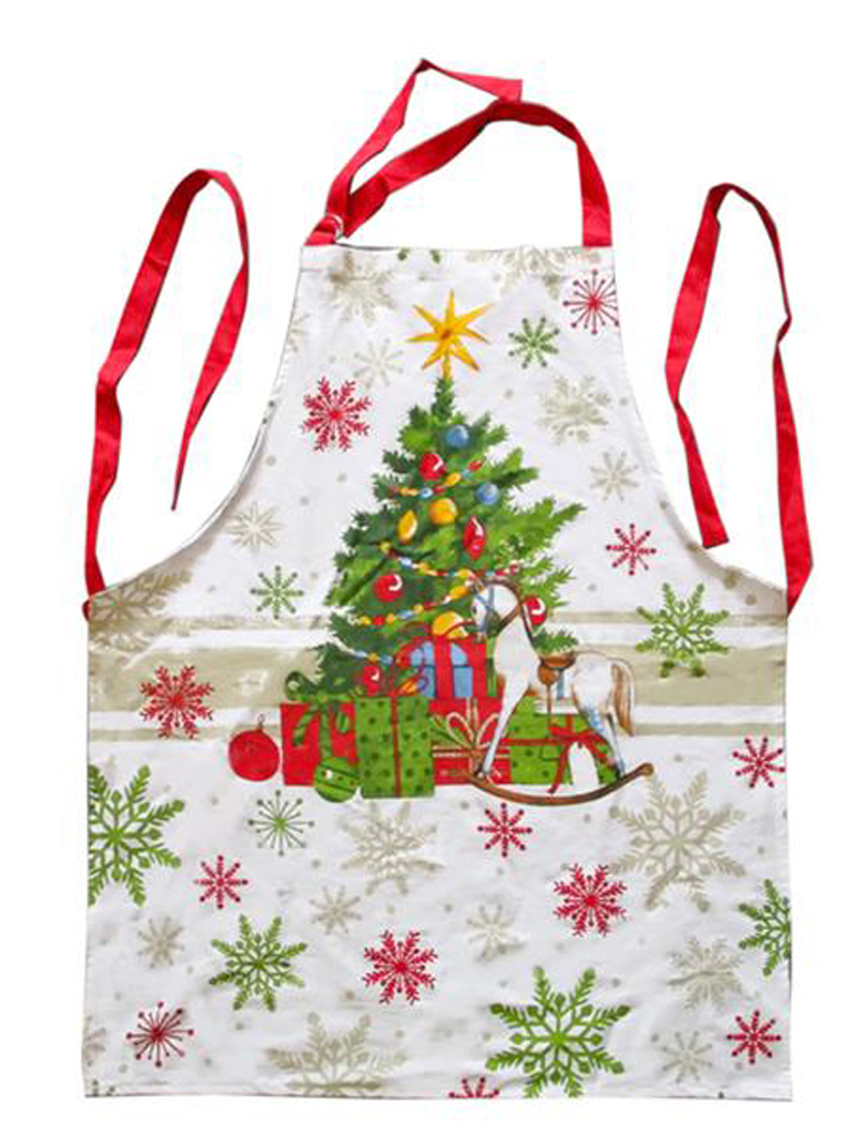 Kuchyňská zástěra s vánočním motivem je velmi vhodná při pečení cukroví, materiál – bavlna, rozměry 65 x 80 cm.