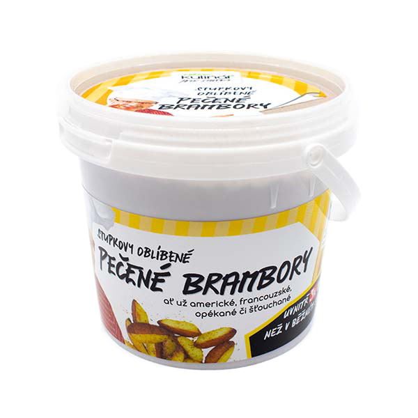 Oblíbené pečené brambory do trouby i na gril, ať už americké, francouzské, opékané či šťouchané. Složení: drcený kmín, cibule, mořská sůl (max. 15%), sladká paprika, mletý koriandr, česnek, pepř černý mletý, petrželová nať. Balení 90 g.