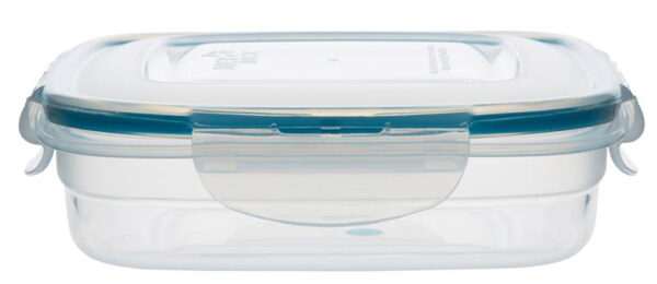 Dózy Lock & Lock „Easy Match“ čtvercové jsou bezpečné a funkční nádoby vyrobené z kvalitního plastu, který je trvanlivý a odolává vysokým teplotám. Tyto dózy jsou 100% vzduchotěsné a tím zajišťují dlouhodobou čerstvost uchovávaných potravin a jsou vynikající také z hlediska uchování vůně (aroma). Čtyři pohyblivé „klipy“ zajišťující víko jsou odolné proti opotřebení. Nádoby mají speciálně upravené vnější dno tak, aby se mohly bezpečně stavět na sebe a neklouzaly. Dózy Lock & Lock lze použít v chladničce, v mikrovlnce, v mrazáku i v myčce na nádobí. Dózy Lock & Lock prošly přísnými hygienickými zkouškami a odpovídají nejpřísnějším předpisům. Objem 550 ml. Barva čirá, tyrkysová.