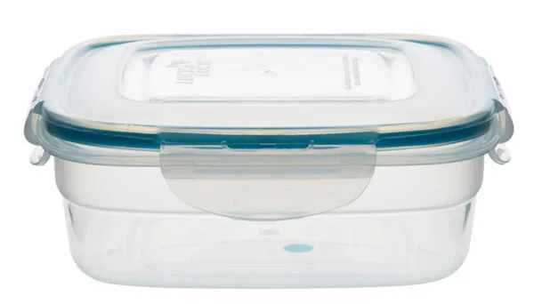 Dózy Lock & Lock „Easy Match“ čtvercové jsou bezpečné a funkční nádoby vyrobené z kvalitního plastu, který je trvanlivý a odolává vysokým teplotám. Tyto dózy jsou 100% vzduchotěsné a tím zajišťují dlouhodobou čerstvost uchovávaných potravin a jsou vynikající také z hlediska uchování vůně (aroma). Čtyři pohyblivé „klipy“ zajišťující víko jsou odolné proti opotřebení. Nádoby mají speciálně upravené vnější dno tak, aby se mohly bezpečně stavět na sebe a neklouzaly. Dózy Lock & Lock lze použít v chladničce, v mikrovlnce, v mrazáku i v myčce na nádobí. Dózy Lock & Lock prošly přísnými hygienickými zkouškami a odpovídají nejpřísnějším předpisům. Objem 750 ml. Barva čirá, tyrkysová.