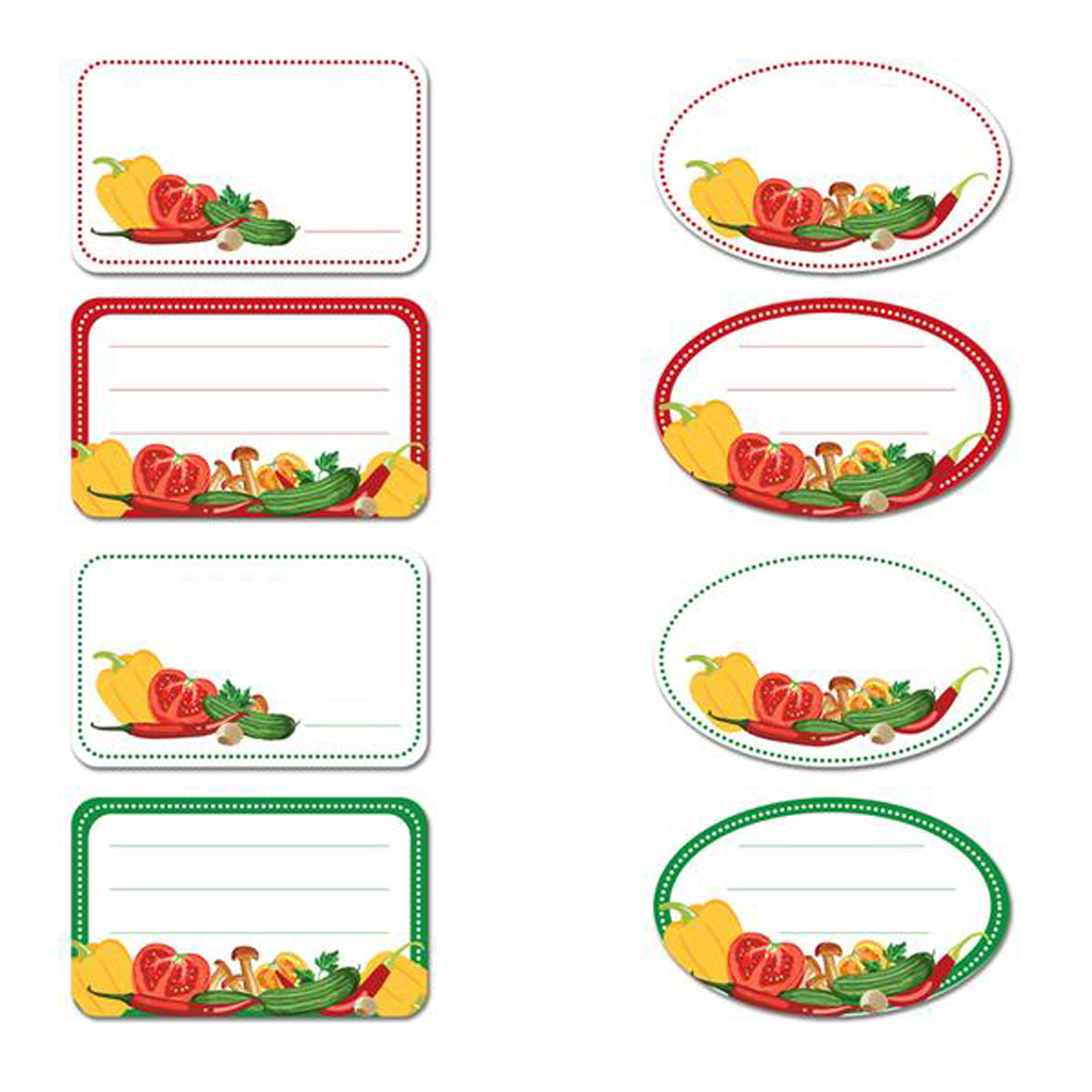 Ozdobné nálepky na sklenice, vhodné na zavařeniny. Vytvořte si vlastní štítky pro snadnější rozlišení a doveďte své domácí dobroty k dokonalosti. Krásný vzhled potěší každou hospodyňku.