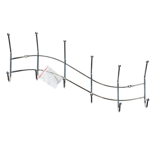 V zádveří či jiném pokoji Vám tento věšák velmi dobře poslouží. Má šest háčků, vlnkovaný tvar, vyroben z pochromovaného kovu. Šroubky jsou součástí balení. Rozměry – 13,5 x 44,5 cm