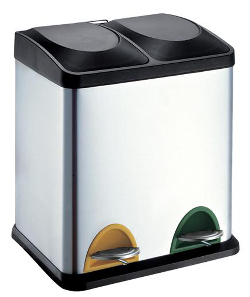 Nerezový nášlapný odpadkový koš na tříděný odpad TORO 30 litrů. Nerezový odpadkový koš TORO vyniká svým jednoduchým designem, samostatně stojící nerezový koš krásně zapadne do stylového vybavení domácnosti nebo kanceláře. Dvě vyjímatelné nádoby, každá o objemu 15 litrů z pevného tvrzeného plastu s madlem pro snadnější manipulaci. Nášlapné pedály jsou barevně odlišené podle norem EU.