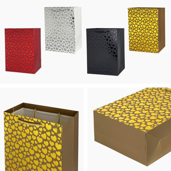 Potěšte rodinu a přátele hezkým dárkem ukrytým do papírové tašky. Papírová dárková taška TORO „SRDCE“ – různé barvy