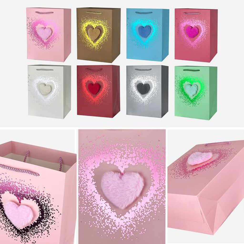 Papírová dárková taška TORO 23x18x10cm MIX srdce 3D