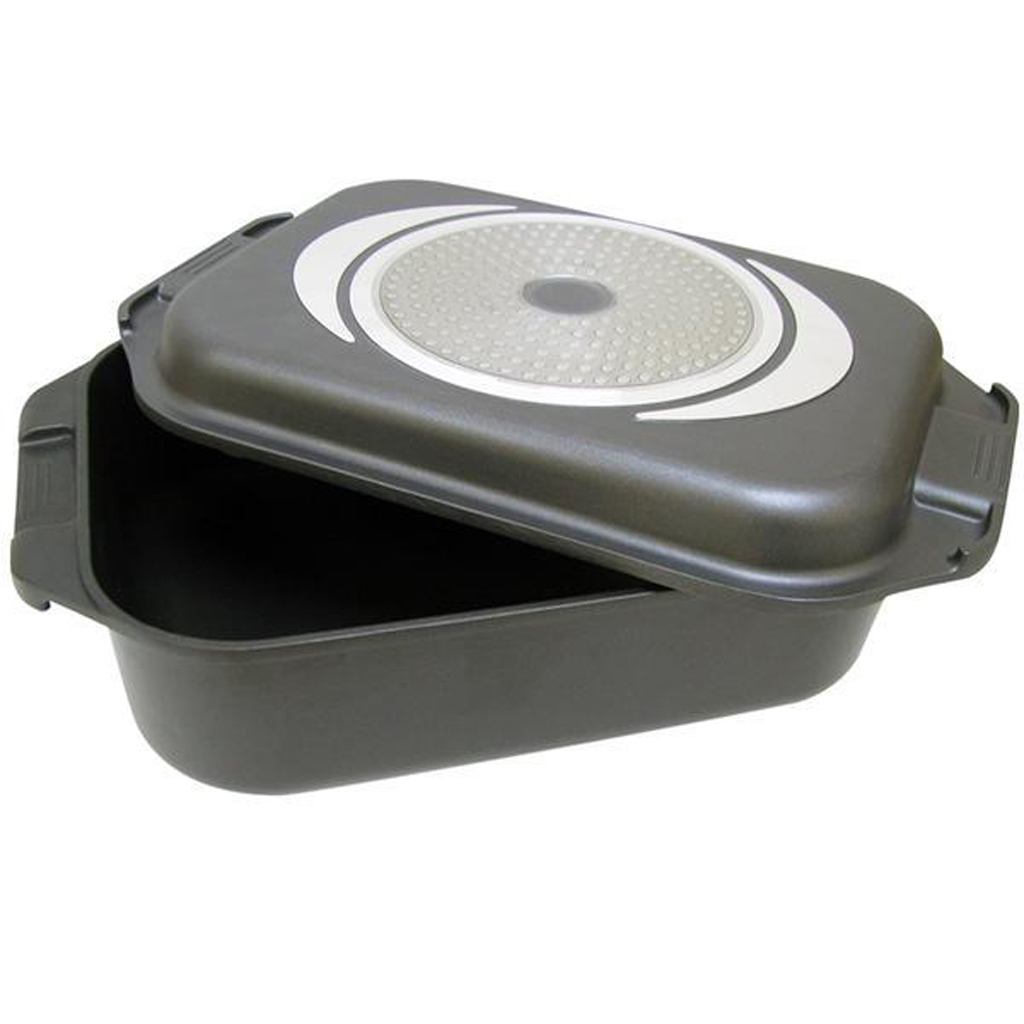 Indukční pekáč a pánev 2v1 má trojvrstvý keramický povrch, který je ekologicky šetrný a bezpečný. Kvalitní nepřilnavý povrch je na obou částech pekáče. Pekáč je vyrobený z litého hliníku a lze ho používat na všech zdrojích tepla (trouba, elektrický sporák, plynový sporák, sklokeramický sporák, indukční sporák…). Tento pekáč není vhodný do myčky na nádobí. Objem 9 l, vnější rozměry pekáče – 42 x 25 cm.