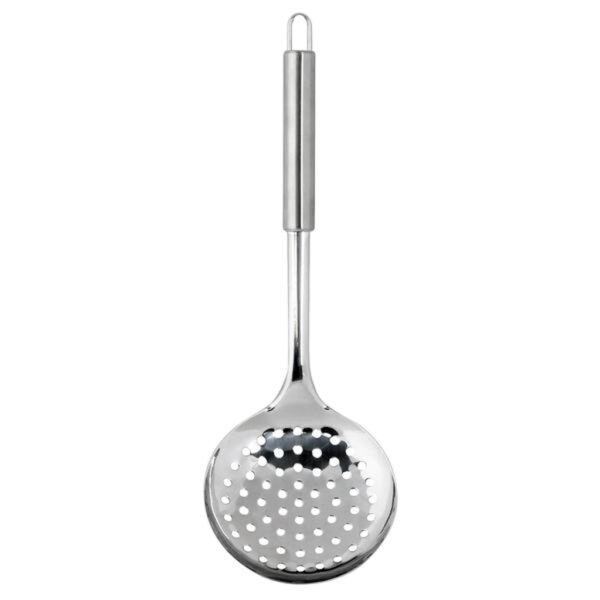 Naběračka děrovaná neboli pěnovačka z lesklé nerez oceli, délka 34 cm, s otvorem pro zavěšení, slouží k vytahování knedlíků při vaření. Vhodná do myčky na nádobí. Rozměry – 34 x 11,3 x 5,8 cm. Barva – stříbrná.