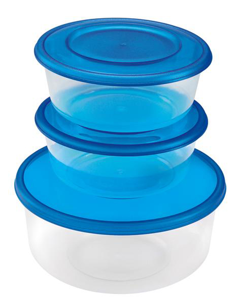 Sada 3 ks plastových dóz kulatých značky Heidrun je vhodná pro uchovávání potravin. Dózy lze také použít jako svačinový box. Jsou vhodné do ledničky, mrazničky, mikrovlnné trouby i do myčky na nádobí. Rozměry jednotlivých dóz – velká průměr 18 cm, objem 1, 7 l, dvě menší mají průměr 14 cm, objem 0,9 l. Barva: zelená a modrá.