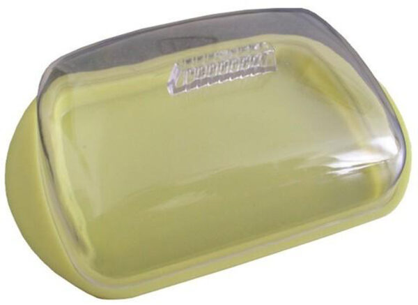 Máslenka s poklopem, vyrobena z odolného plastu, uchová máslo čerstvé a svěží, vhodná do myčky nádobí. Rozměry – 17 x 10 cm.