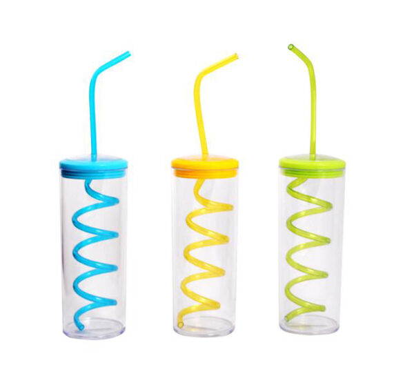 plastový kelímek je vhodný na studené nápoje. Je vyroben z plastu, uvnitř je kroucené brčko pro snadnější pití nápojů. Assort barev. Objem 350 ml.