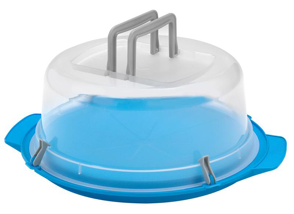 Kulatý plastový podnos s poklopem, ve kterém uskladníte a přepravíte dort či koláč je skvělým pomocníkem ve Vaší kuchyni. Praktická ucha umožňují snadý přenos podnosu. Velikost podnosu 40 x 35 x 15 cm.