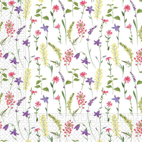 Papírové ubrousky dodají prostřenému stolu příjemnou atmosféru u slavnostní večeře. Ubrousek je 3 vrstvý, v balení 20 ks, motiv – luční květy.