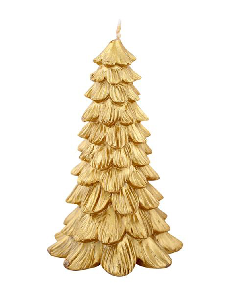 svíčka ve tvaru vánočního stromečku. Hodí se na každý vánoční stůl, kde navodí tu pravou sváteční atmosféru. Materiál – parafín. Barva zlatá. Rozměry – 8,5 x 13 cm.
