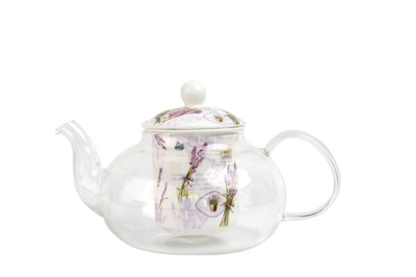 Čajová konvice v nadčasovém designu! Čajová konvice „levandule“ je vyrobena z borosilikátového skla, které je odolné vůči vysokým teplotám, proto se nemusíte bát, že by sklo prasklo při zalívání čaje vařící vodou. Konvice je lehká, přitom odolná a je dodávaná společně s keramickou pokličkou i sítkem na louhování čaje. Nadčasový celo skleněný design v kombinaci s keramickým víčkem a filtrem dodává konvici krásný vzhled, Hodící se do každé domácnosti. Objem konvice je 600 ml.