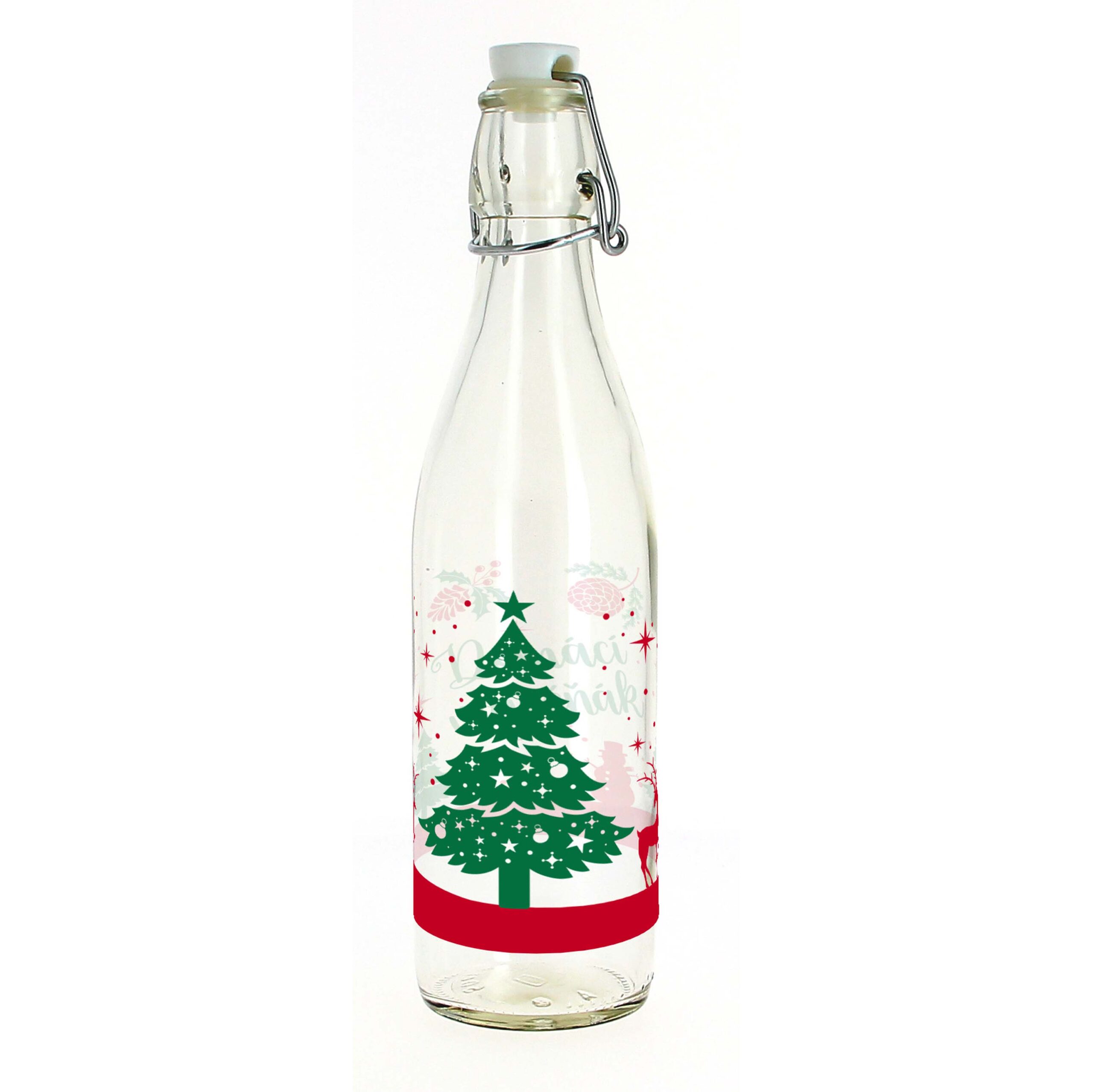 Skleněná láhev TORO s pevným klip uzávěrem je ideální na krátkodobé i dlouhodobé uchovávání domácí šťávy, moštu, likéru nebo ostřejší pálenky. Díky masivnímu nerez klipu a kvalitnímu těsnění nepřijdete ani o kapku nápoje.  Kvalitně provedený potisk na motivy domácího vaječňáku dodá láhvi originální sváteční nádech. Vaječný koňak i domácí Baileys v láhvi se svátečním motivem poslouží i jako nádherný dárek pro Vaše blízké.