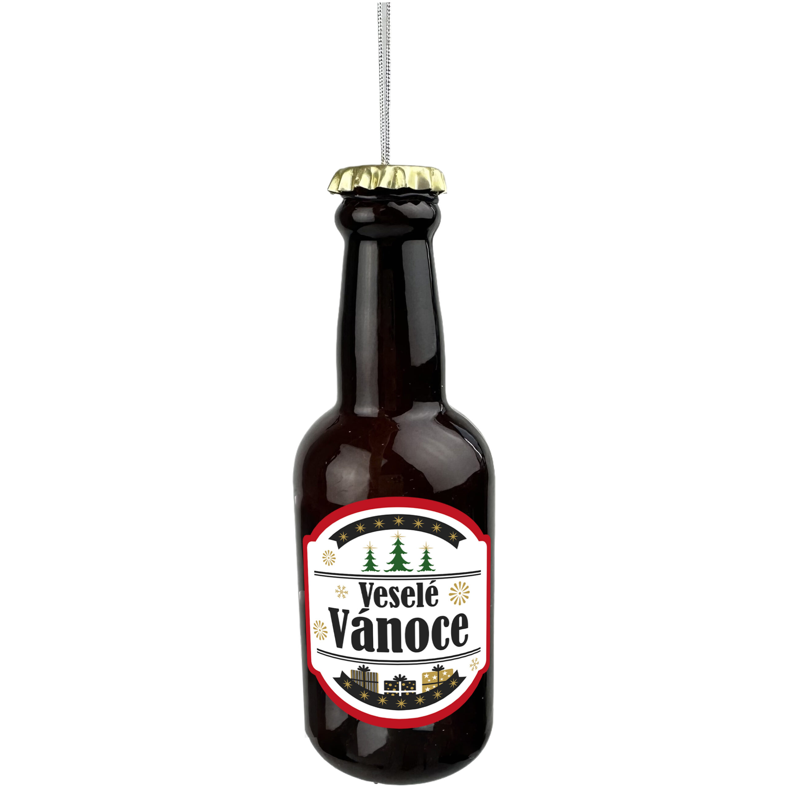 OZDOBA VÁNOČNÍ PIVNÍ LÁHEV 4,5X13,1CM SKLO