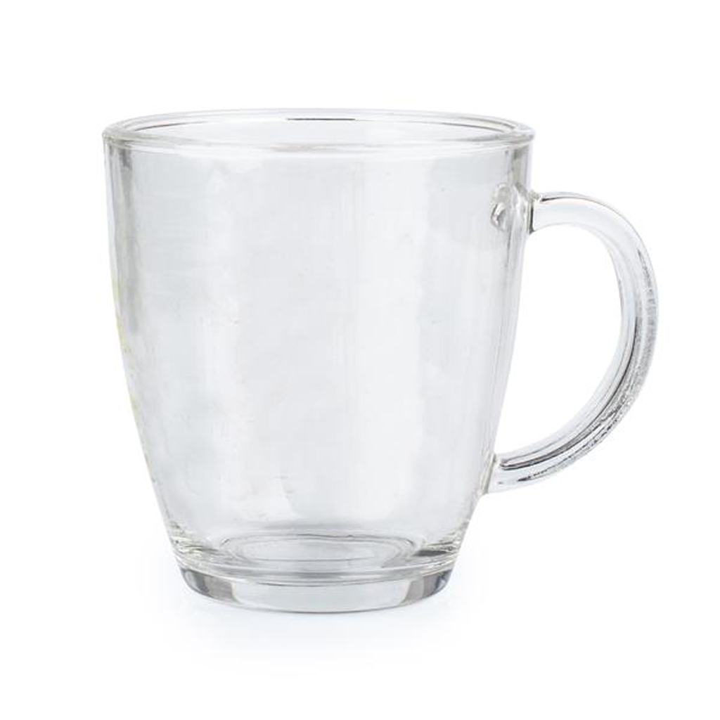 Skleněný hrneček TORO o objemu 350 ml bez potisku. Velikost hrnku je ideální na podávání uvařeného čaje, větší kávy nebo ostřejších nápojů na zahřátí.