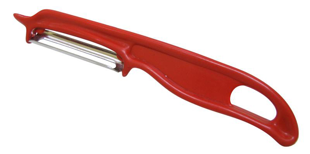 Škrabka na brambory s pohyblivou čepelí usnadňuje loupání brambor. Neabsorbuje aroma, chutě ani barvy pokrmů. plastová rukojeť je uzpůsobena pro pověšení na závěsnou tyč. Barva červená, stříbrná. Materiál – plast, nerez. Rozměry – 2 x 14 cm.