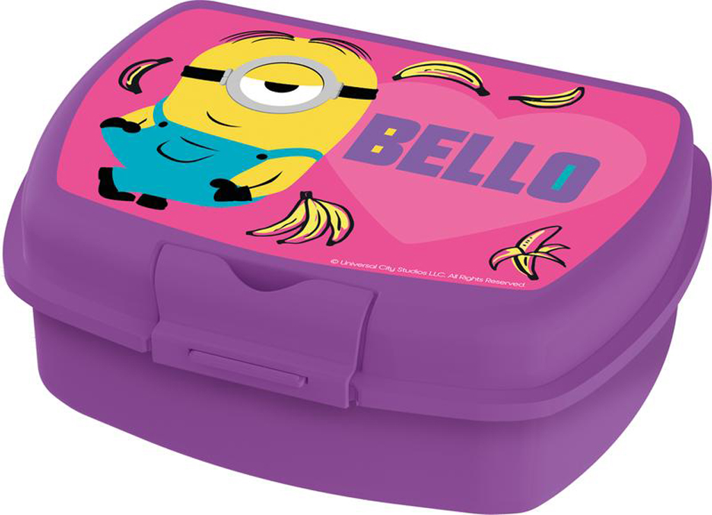 Plastový box s pevným klipem na uzavření využijete na svačinu do školy, na výletě, na piknik i do auta. Dostatečně prostorná krabička bezpečně uchová sendviče, toast i nakrájené ovoce a zároveň ochrání tašku nebo batoh před znečištěním od jídla. Použitý odolný plast činí krabičku téměř nerozbitnou. Atraktivní design Mimoni nadchne všechny milovníky tradičních malovaných Disney hrdinů