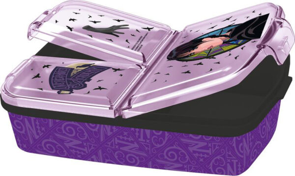 Plastový box s pevnými klipy na uzavření využijete na svačinu do školy, na výletě, na piknik i do auta. Dostatečně prostorná krabička bezpečně uchová sendviče, toast i nakrájené ovoce a zároveň ochrání tašku nebo batoh před znečištěním od jídla. Použitý odolný plast činí krabičku téměř nerozbitnou. Atraktivní design Wednesday nadchne všechny milovníky tradičních malovaných Disney hrdinů