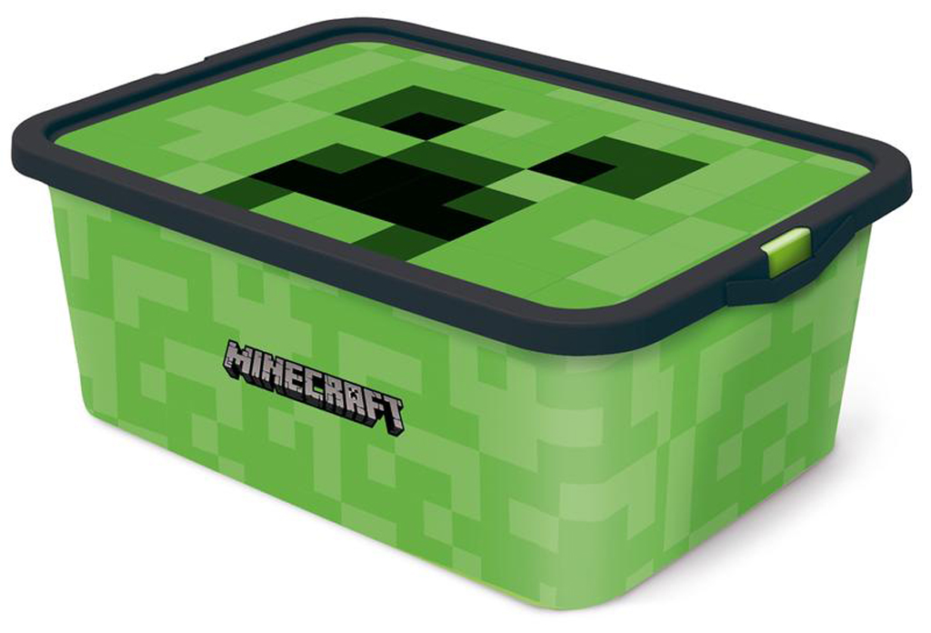 Plastový úložný box „MINECRAFT“ s praktickým víkem. Kvalitní plastový box je skvělý pomocník na uchování, skladování a ochranu drobností, oblečení, hraček. Úložná krabice ochrání vše před nečistotami, prachem, vlhkem a poškozením.