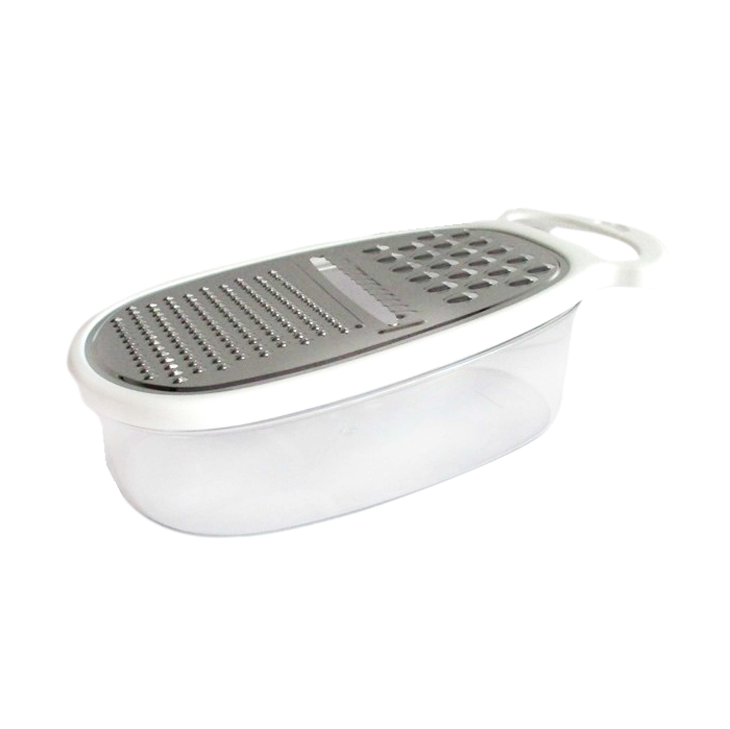 Kombinované struhadlo Toro nabízí praktickou všestrannost v kuchyni díky třem různým břitům a integrovanému zásobníku, který zachytí nastrouhanou surovinu přímo během strouhání. Vyrobeno z kvalitního a odolného materiálu, zvládne jemné i hrubé strouhání zeleniny, sýra nebo čokolády. Díky praktickému designu je snadné manipulovat, čistit i skladovat — a zásobník zabraňuje nepořádku při práci. Struhadlo má masivní ucho pro snadné strouhání.