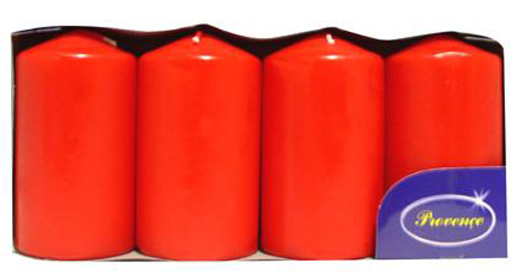svíčka válec – 4 ks. Jednoduchý zdroj světla, který navodí ve Vašem domově příjemnou atmosféru. Svíčka je zároveň vhodná na vytváření vánočních, velikonočních, ale i jiných aranžmá. Nezapomeňte prosím dbát na bezpečnost a držte se na svíčce uvedených bezpečnostních piktogramů. Rozměry svíčky – 5 x 9 cm. Barva červená.