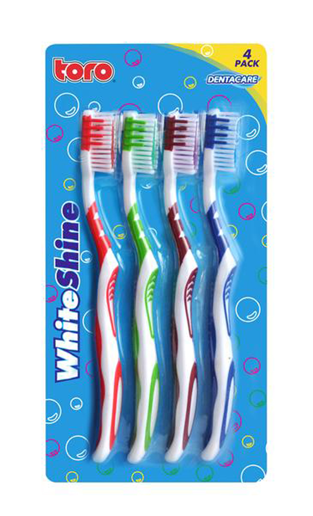 Kartáček na zuby pro ústní hygienu. Balení 4 ks – různé barvy. Délka kartáčku – 19 cm.