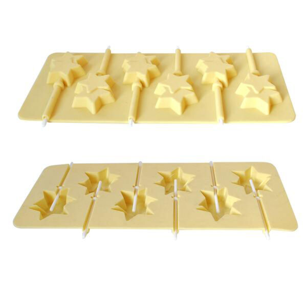 Tvořítko na čokoládová, karamelová a ovocná lízátka. Vyrobeno z tepelně odolného silikonu, který lze použít v rozmezí teplot -40 až 220°C. Snadná manipulace a údržba. Vhodné do myčky. Tvar hvězdy – s brčkem. Barva krémová. Rozměry – 24 x 11 x 1,3 cm.