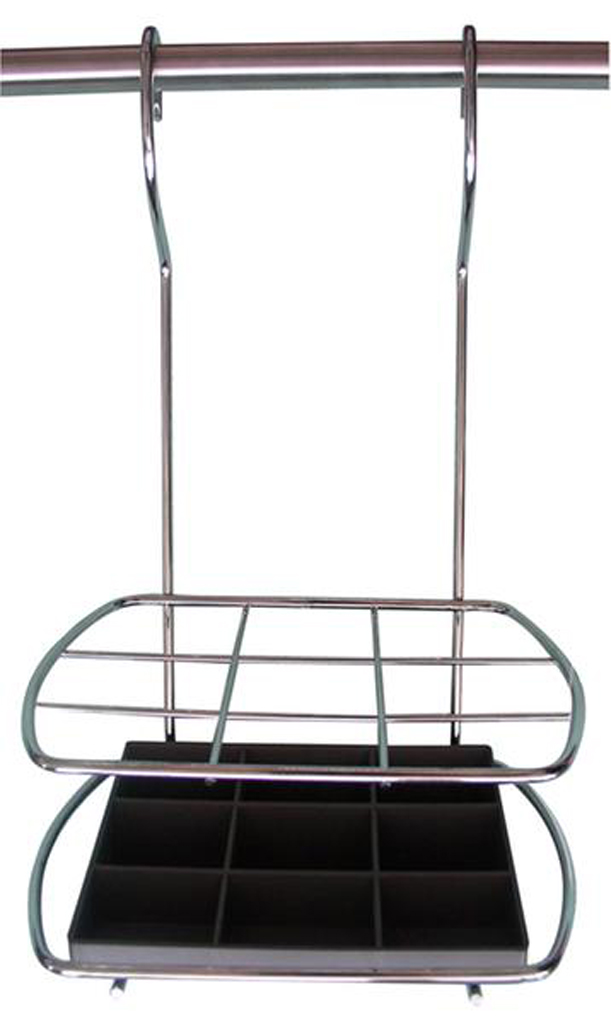 Do každé kuchyně se hodí tento závěsný zásobník na náčiní s devíti otvory, vyrobený z pochromovaného kovu.