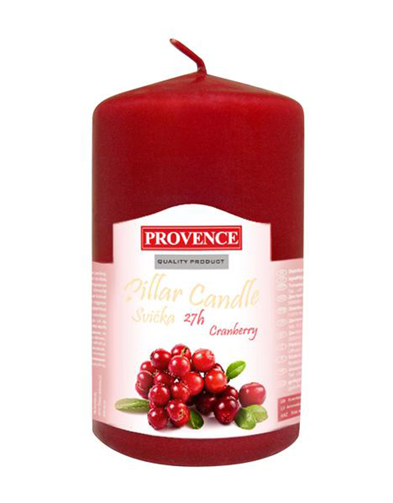Vonná svíčka PROVENCE 11cm brusinka ve tvaru válce je vhodná nejen k dekoraci a zpříjemnění chvil strávených doma, k výrobě různých věnců ale i jako intimní zdroj světla při romantických chvílích