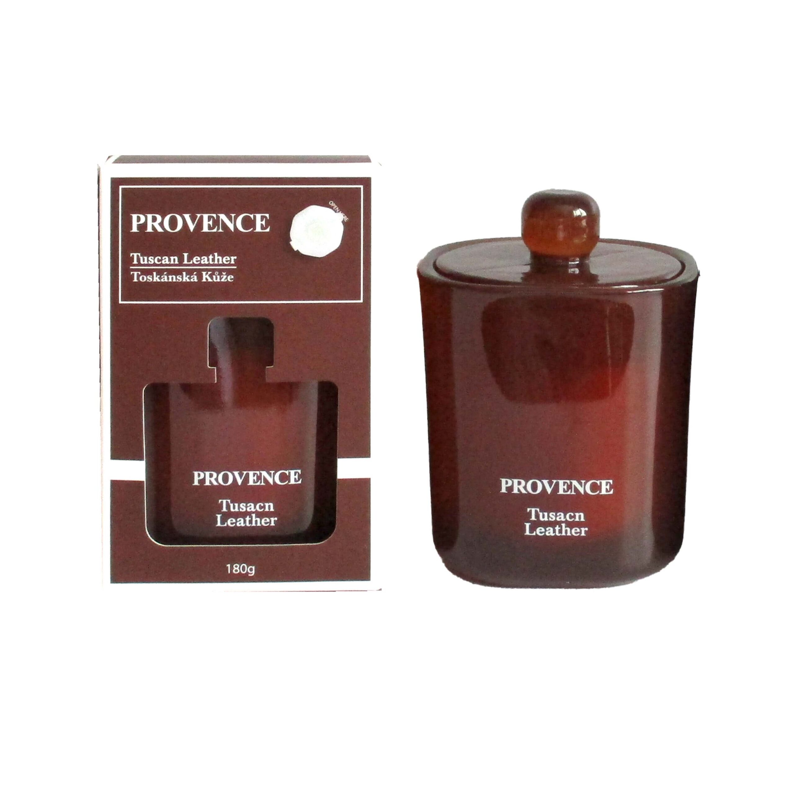 Luxusní vonná svíčka ve skle PROVENCE – Tuscan Leather zaujme svou výraznou, smyslnou vůní inspirovanou italskou elegancí. Kombinuje hluboké tóny kůže, dřeva a jemného koření, které dohromady vytvářejí vůni sofistikovanou, mužnou a mimořádně charismatickou. Tuscan leather vůně je proslulá svou výraznou koženou vůní. Je inspirována vůní nejkvalitnější kůže a interpretuje její smyslnost a luxus. Stylové skleněné provedení působí elegantně a nadčasově, a po dohoření lze využít jako dekorativní doplněk. Doba hoření až 25 hodin vám zajistí dlouhé chvíle pohody v doprovodu hřejivého světla a luxusní vůně.