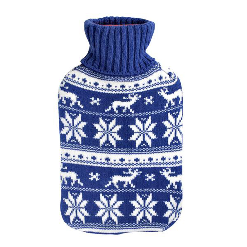 Gumová láhev v pleteném obalu s designem norský vzor o objemu 2 l. Lahev neboli thermofor je schopen udržet příjemné teplo, slouží k lokálnímu zahřátí části lidského. Využívá se při bolestech zad, svalů, kloubů, nachlazení, prohřátí ledvin nebo na prohřátí studené postele. Láhev je vyrobena z kvalitní, teplu odolné pryže.Vlněný obal – norský vzor zamezuje přímému kontaktu s gumovým povrchem termoforu, zmírňuje nepříjemný dotek na horký termofor, zamezuje vzlínání gumového pachu. Barva – červená, modrá.