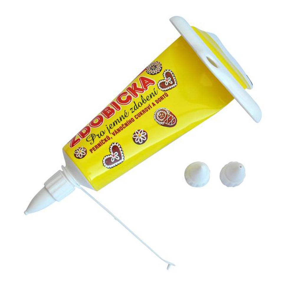 Zdobička dortů a perníčků. Je perfektní na zdobení vánočního cukroví a perníčků. Zdobičku snadno naplníte bílkovou, žloutkovou nebo čokoládovou polevou. Výborně padne do ruky a umožní Vám vytvářet i velmi malé ozdobné ornamenty. Na balíčku naleznete přesný pracovní postup a také recepty na bílkový, žloutkový i čokoládový krém.