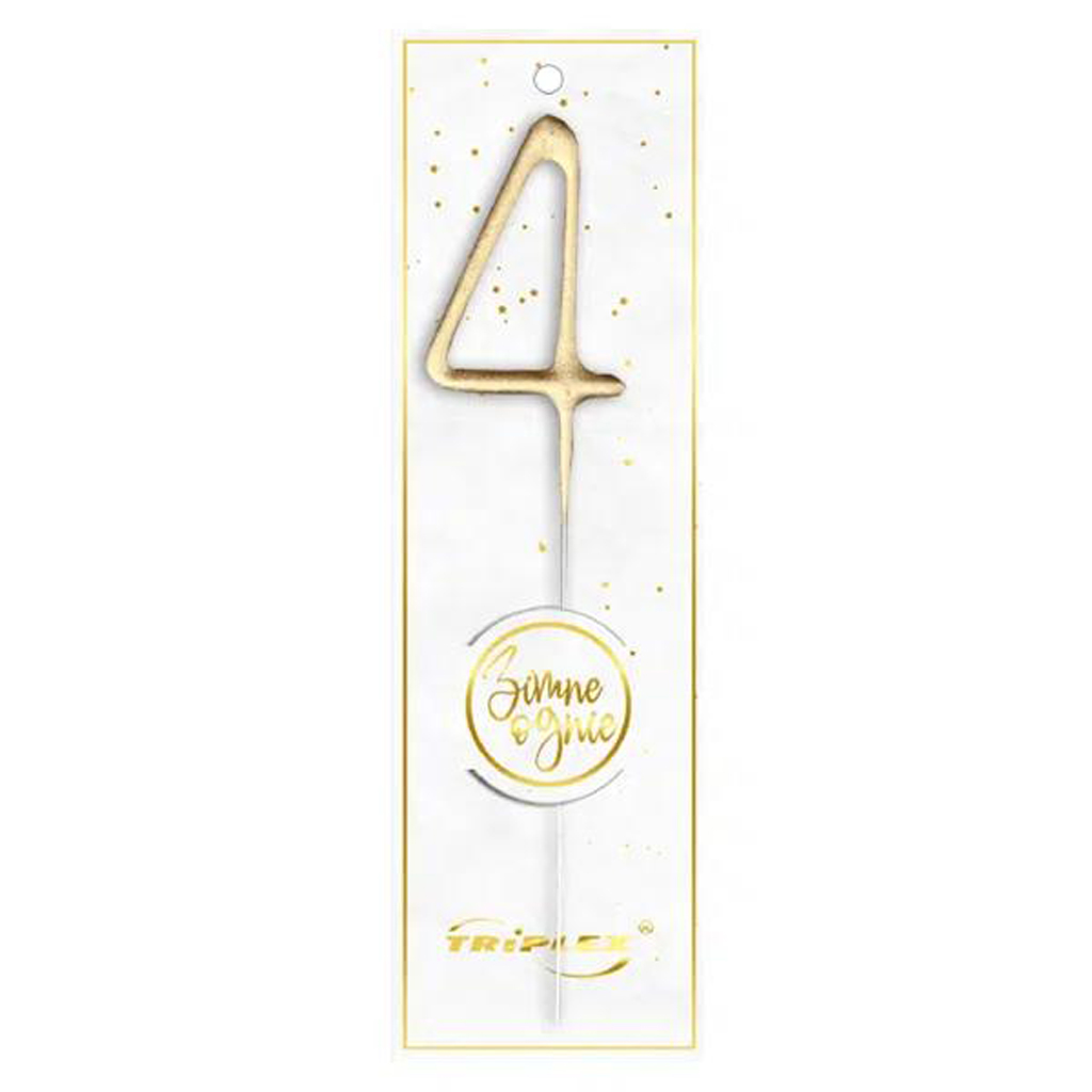 Zlatá prskavka TORO ve tvaru číslice „4“ je vhodná pro slavnostní okamžiky jako jsou narozeniny, dětské oslavy či tematické párty. Tato prskavka je způsob jak ozdobit dort či jiné pochoutky na oslavě. Jednotlivé prskavky můžete doplnit o další číslice a vytvořit tak ideální dekoraci pro vaši oslavu narozenin či jubilea.