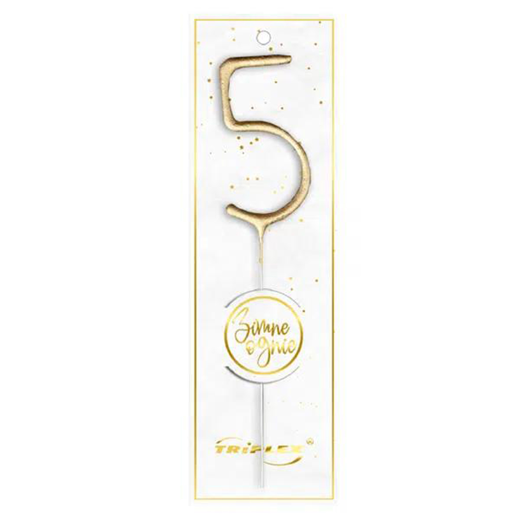 Zlatá prskavka TORO ve tvaru číslice „5“ je vhodná pro slavnostní okamžiky jako jsou narozeniny, dětské oslavy či tematické párty. Tato prskavka je způsob jak ozdobit dort či jiné pochoutky na oslavě. Jednotlivé prskavky můžete doplnit o další číslice a vytvořit tak ideální dekoraci pro vaši oslavu narozenin či jubilea.
